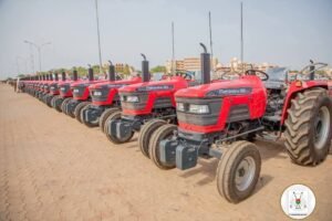 En une année seulement (mai 2024 à mai 2025), la remise a porté sur : 1 747 motos, 1 195 motopompes, 1 341 motoculteurs, 1 008 tracteurs, 150 broyeurs polyvalents, 17 camions, 2 ateliers de foration, 935 cages flottantes, 36 véhicules utilitaires, 10 unités de transformation, 41 851,5 litres de produits phytosanitaires, 66 952 895 doses de médicaments vétérinaires, 138 964 tonnes d’engrais minéraux, 11 580 tonnes d’aliments pour poissons, 21 169,5 tonnes d’aliments pour bétail, 33 000 tonnes de semences végétales et 2 300 tonnes de semences fourragères.