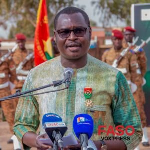 Prenant la parole, le ministre Pingdwendé Gilbert OUÉDRAOGO a rappelé la portée de cette cérémonie, inscrite dans le prolongement des commémorations du 65ᵉ anniversaire de l’indépendance du Burkina Faso. Il a souligné que, fidèle à la tradition républicaine, le Président du Faso, le capitaine Ibrahim TRAORÉ, Grand Maître des Ordres, a tenu à honorer des filles et des fils du pays qui se sont illustrés par la qualité exceptionnelle de leur travail et leur sens du devoir.
