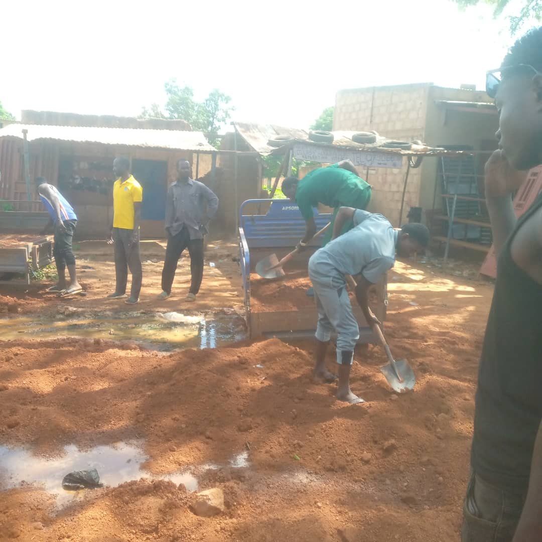 Dès les premières heures de la matinée, la Coordination nationale des associations villageoises de développement (CNAVC) d’Arbolé a réuni la jeunesse locale pour une action concrète. Munis de pelles, de pioches et de tricycles, les jeunes se sont engagés à réhabiliter la voie reliant l’école primaire A au marché, devenue impraticable en cette saison pluvieuse. Cette route, essentielle pour les écoliers, les commerçants et les habitants, a retrouvé une praticabilité grâce à la détermination collective.